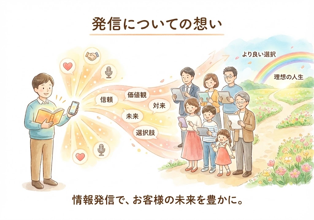 私やあなたが発信する情報が、お客様の未来の選択肢を豊かにし、理想の人生の実現に役立つことを願っています。
